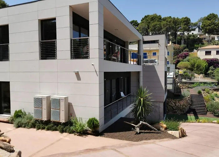 La cocina completa cuenta con servicio de tetera/cafetera, hervidor eléctrico, nevera y un horno. Los huéspedes pueden cenar en el restaurante Restaurante Solimar, situado a tan solo 5 minutos a pie. El aeropuerto Gerona se encuentra a 60 minutos en coche de esta villa.